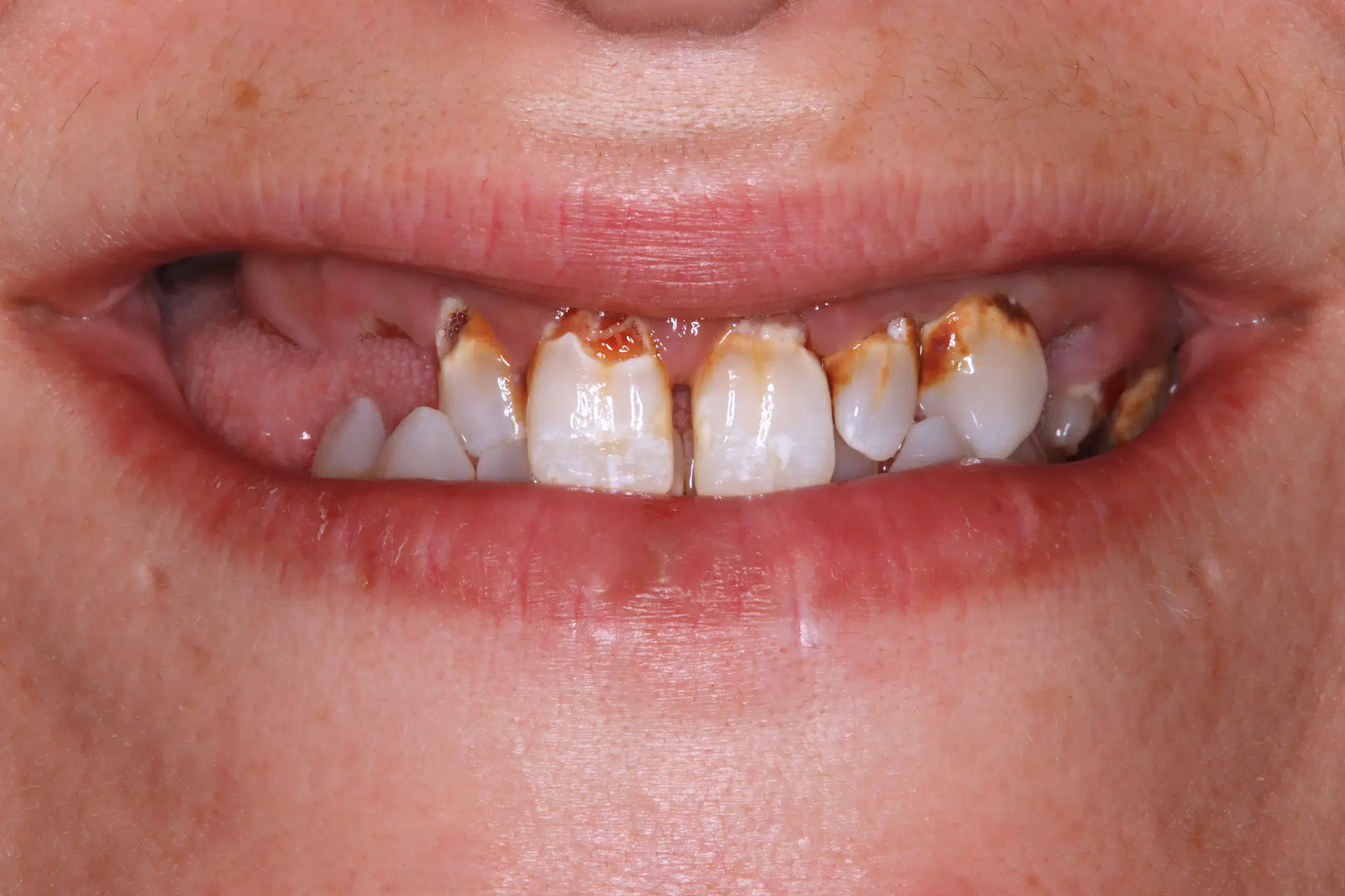 Severely damaged and stained teeth completely restored. Smile rehabilitation ($10,000-$20,000 aprox. cost)