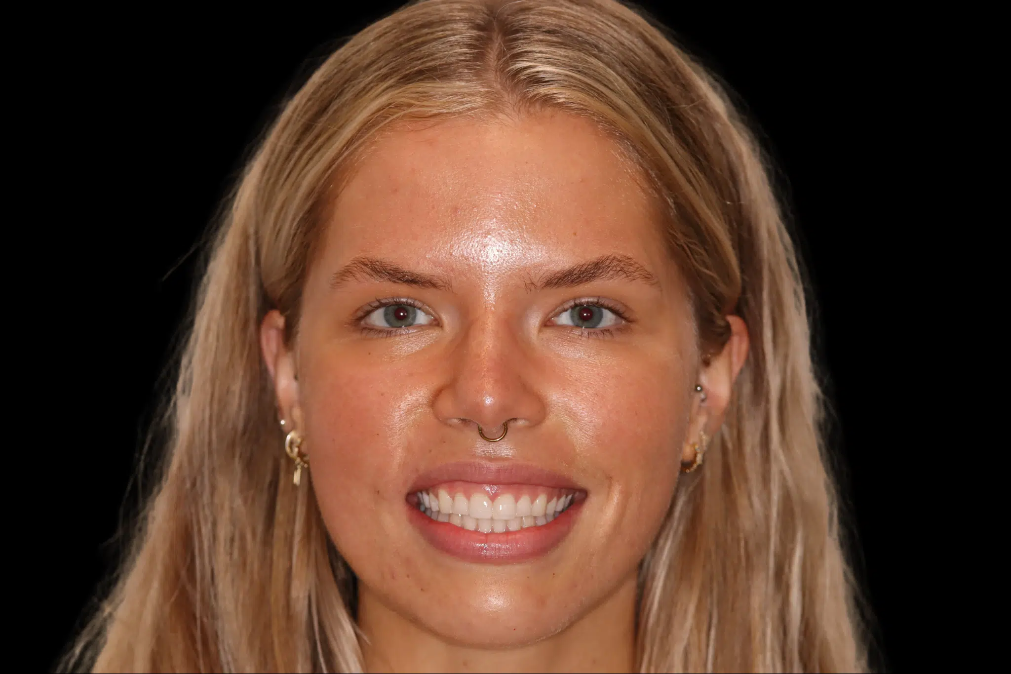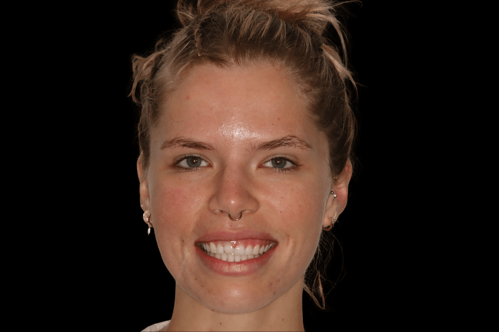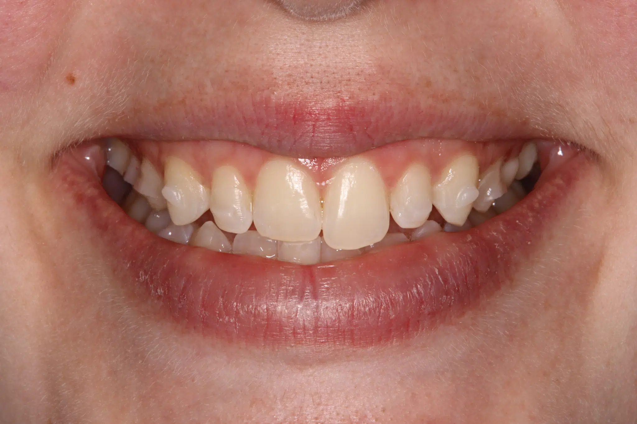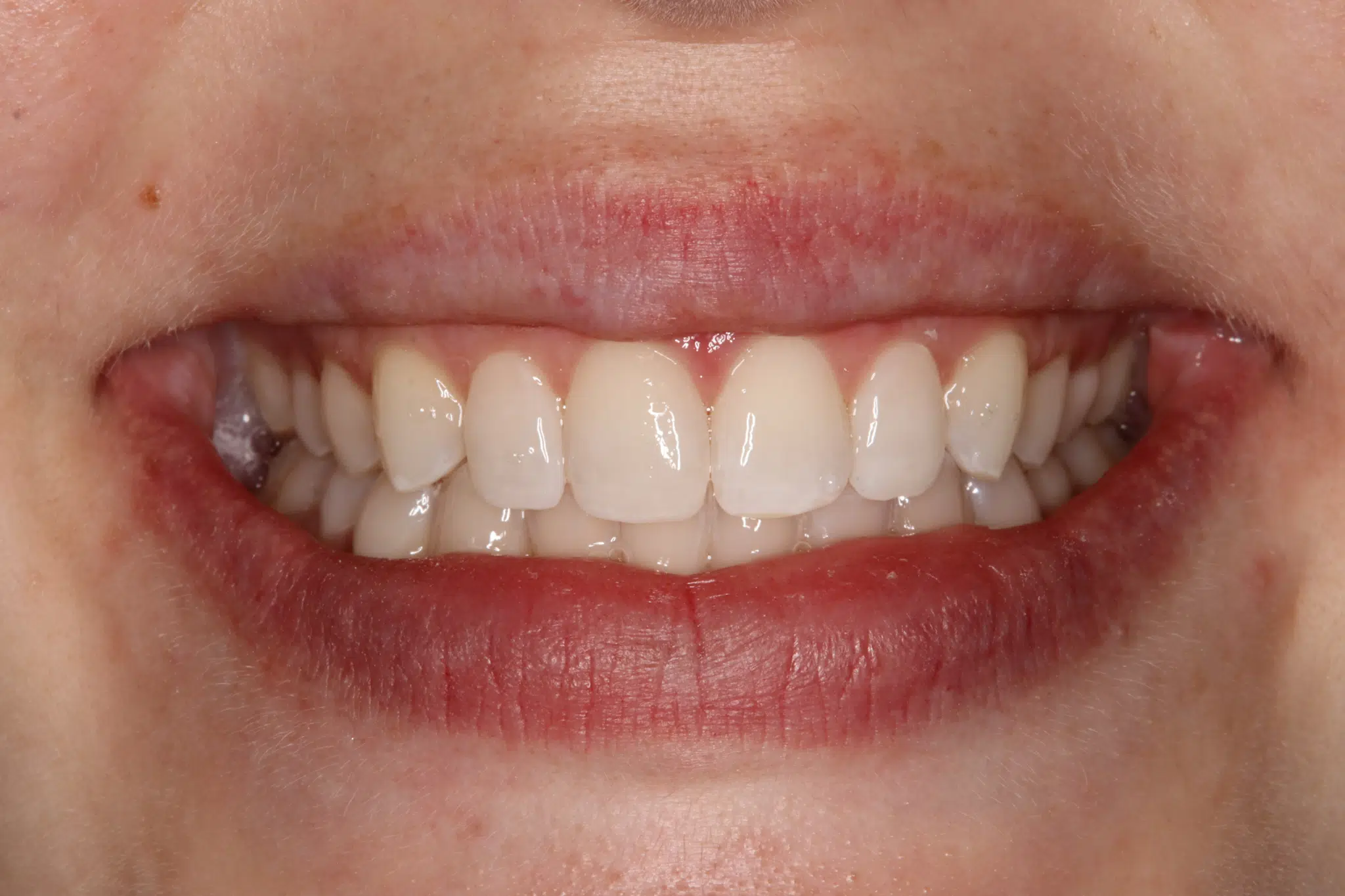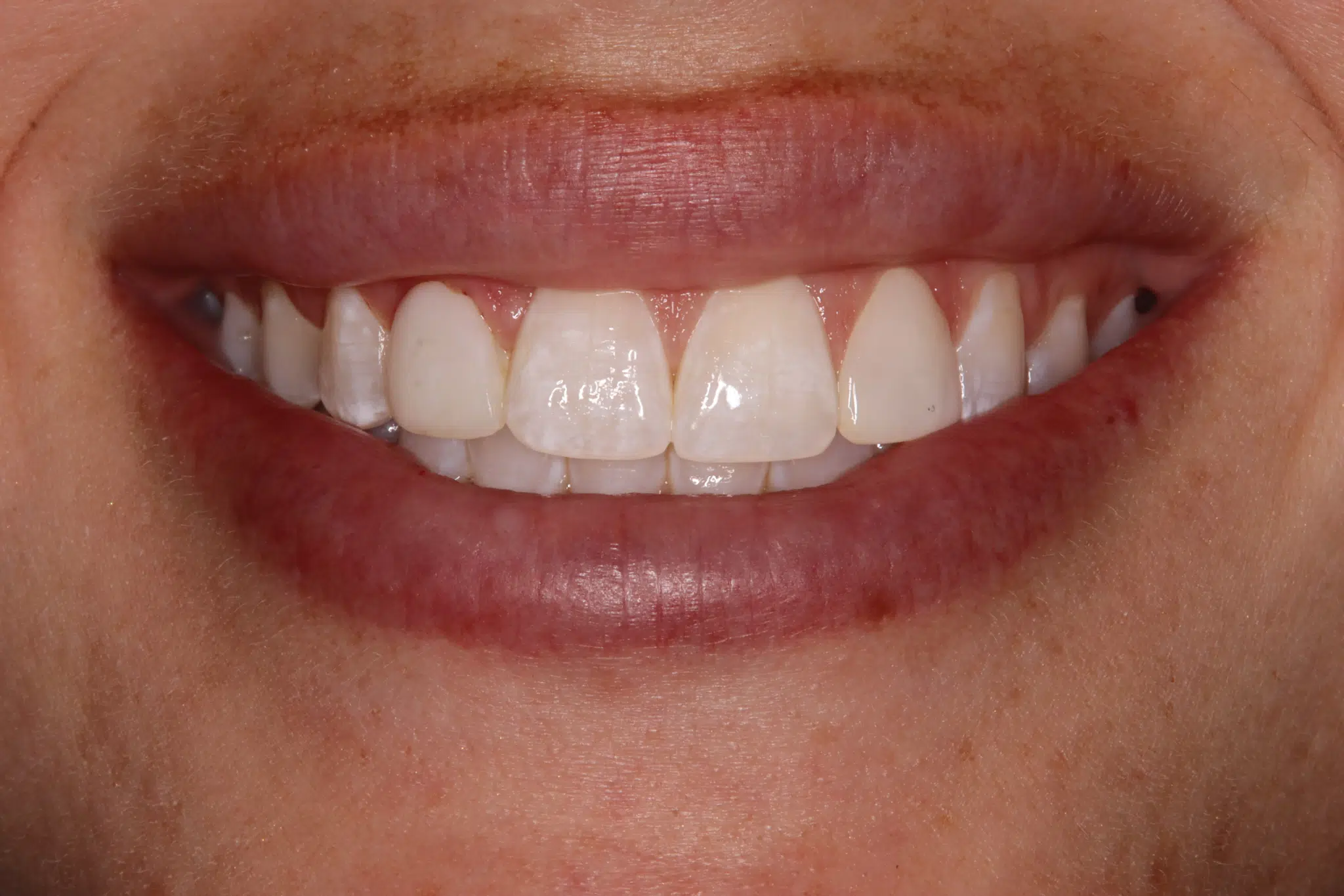 Uneven color and small gaps refined with non-invasive custom composite veneers—bringing a naturally radiant smile. Smile Makeover ($5,000–$15,000 approx. cost)