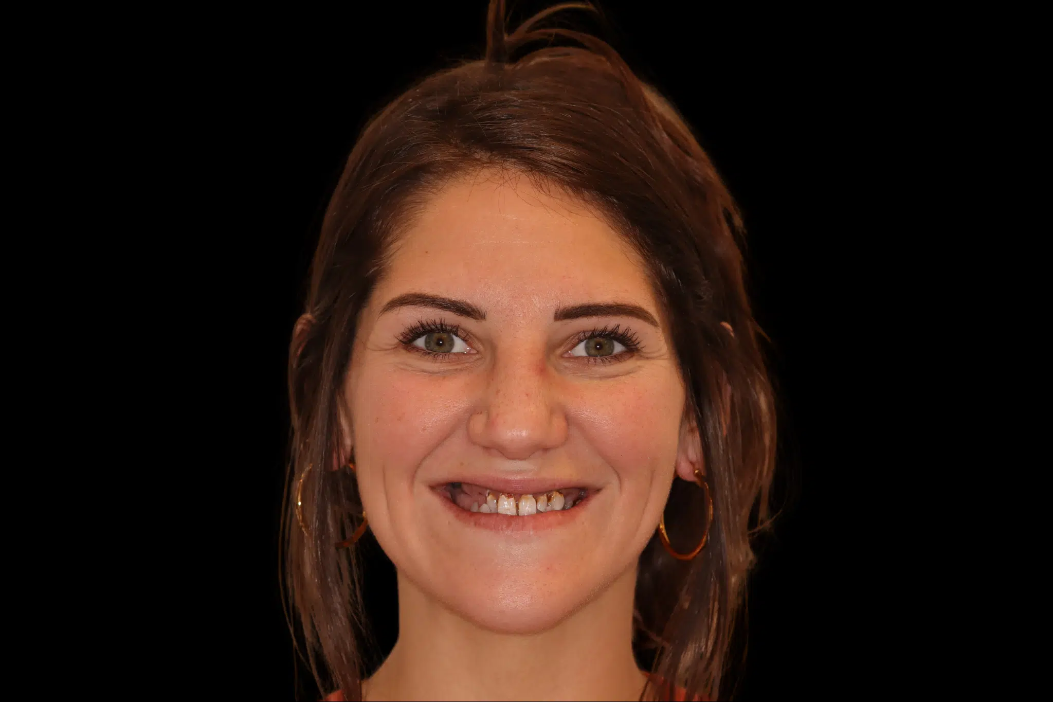 Short front teeth treated with non-prep composite veneers, to give harmony to her smile. Smile Makeover ($5,000-$15,000 aprox. cost)