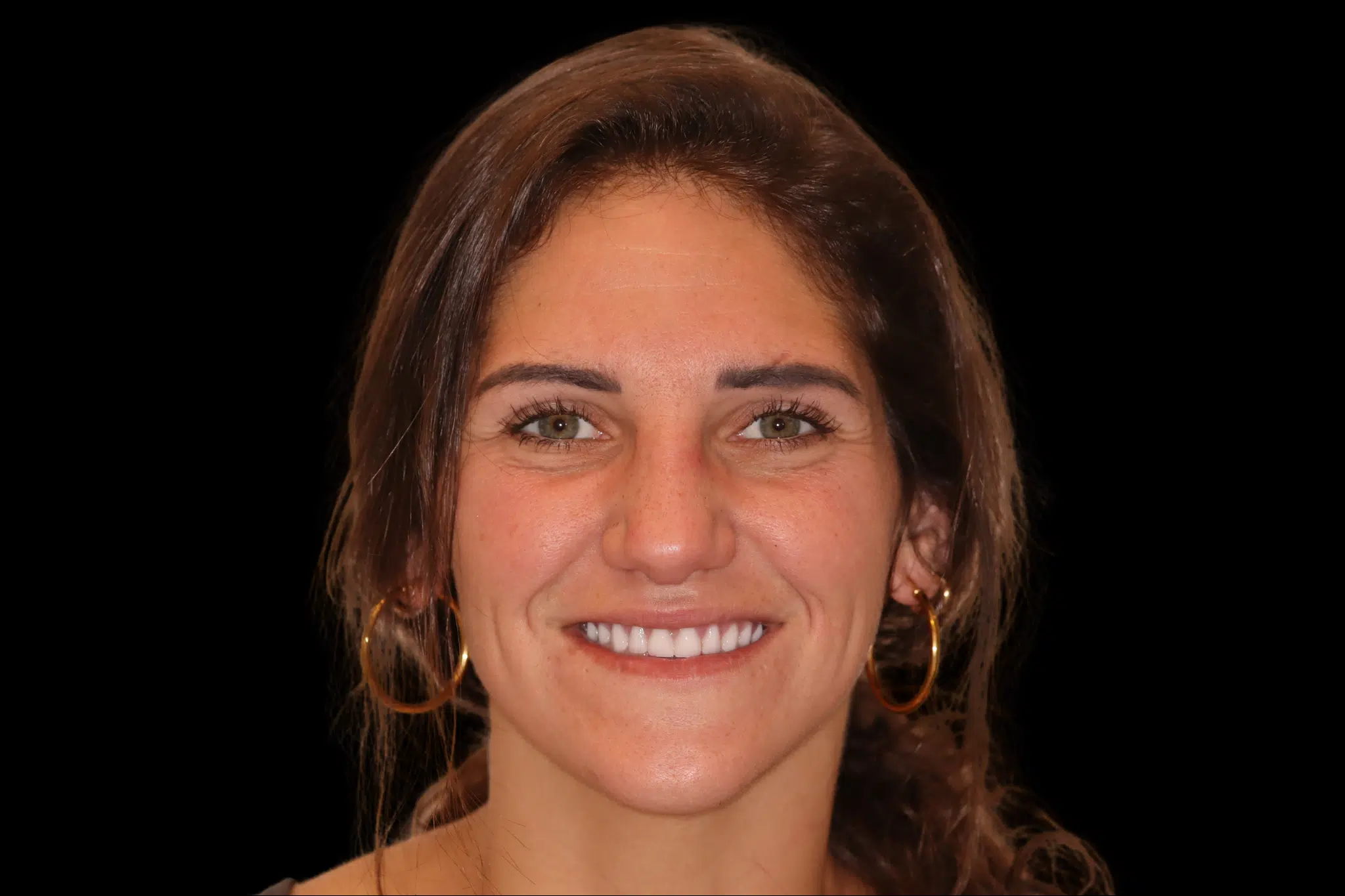 Custom veneers transformed this smile, correcting alignment, closing gaps, and enhancing brightness for a natural, confident look. Smile Makeover ($10,000-$20,000 aprox. cost)